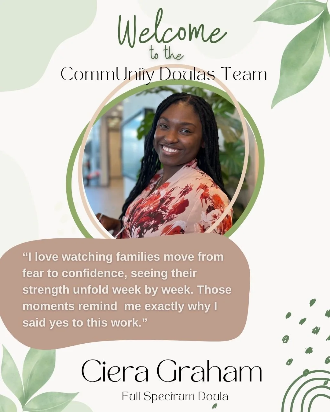When she discovered the CommUnity Doulas Team, everything aligned. Their mission, their heart for families, their commitment to community care, it all matched what Ciera brought into the world. Joining the team felt natural.